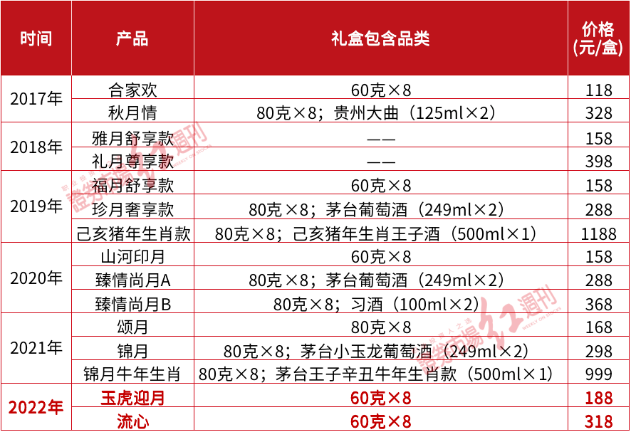 附表:茅臺國際大酒店歷年中秋推出產(chǎn)品
