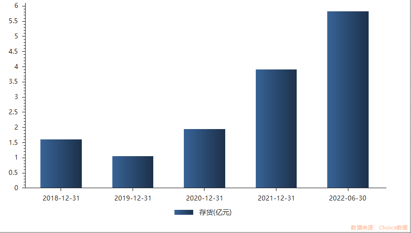其次,公司更為重要的存貨指標大幅上升。鉑力特2019年登陸科創(chuàng)板,當年末公司存貨1.06億元,到2020年和2021年末分別為1.95億元和3.91億元,今年上半年末其存貨已上升至5.83億元。