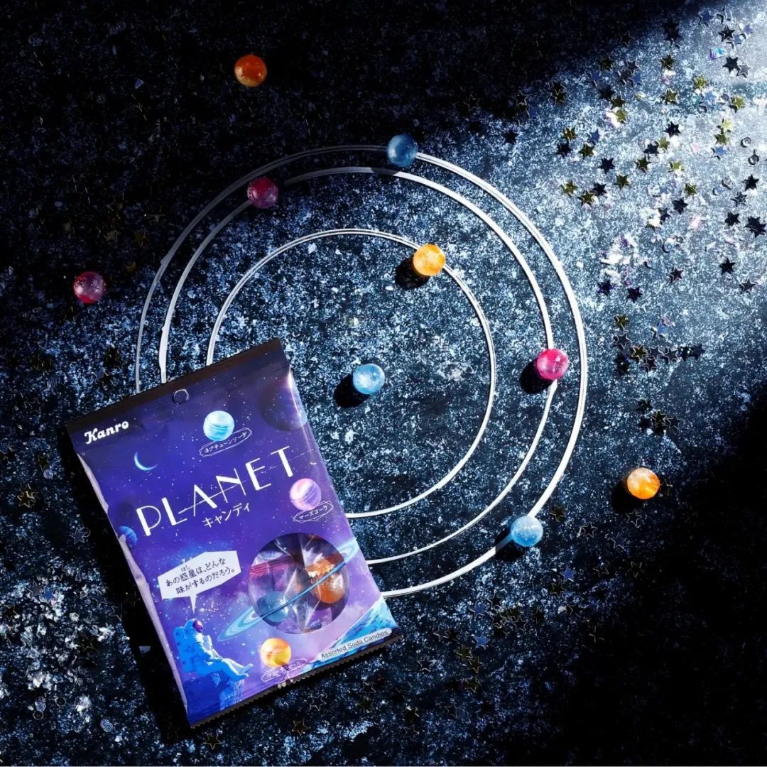 日本糖果巨頭Kanro就以行星為靈感推出了一款具有神秘味道的浪漫糖果“PLANET Candy”,讓消費(fèi)者可以一邊沉浸在宇宙的世界觀中,一邊想象星球的味道。