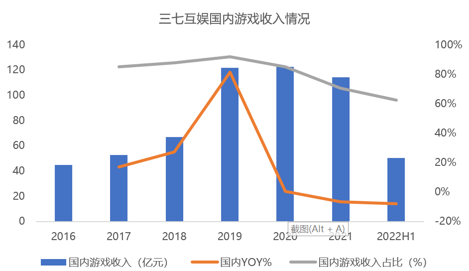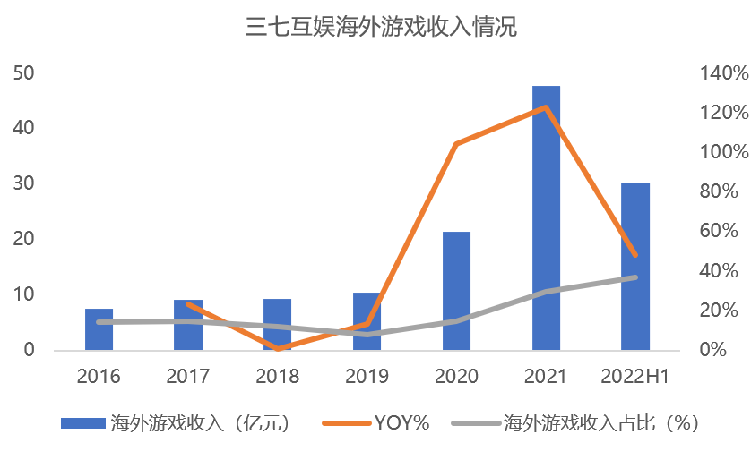 上半年,三七互娛國(guó)內(nèi)業(yè)務(wù)營(yíng)收50.59億元,同比下降7.91%,海外業(yè)務(wù)營(yíng)收30.33億元,同比增長(zhǎng)48.33%。三七互娛海外收入增速遠(yuǎn)高于中國(guó)音數(shù)協(xié)游戲工委公布的2022上半年我國(guó)自主研發(fā)游戲海外市場(chǎng)實(shí)際銷售收入6.16%的同比增速。