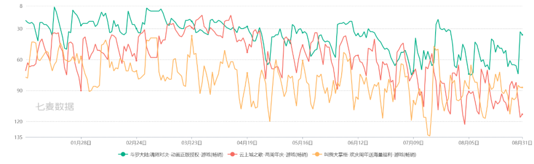 圖:三七重點(diǎn)游戲22年以來在iOS渠道的排名趨勢(shì)(來源:七麥數(shù)據(jù))