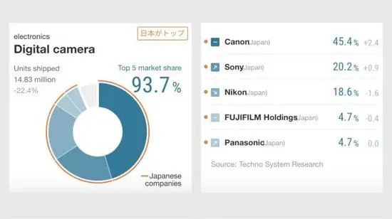 2019年全球數(shù)碼相機(jī)的市場(chǎng)份額排名,奧林巴斯跌出前五