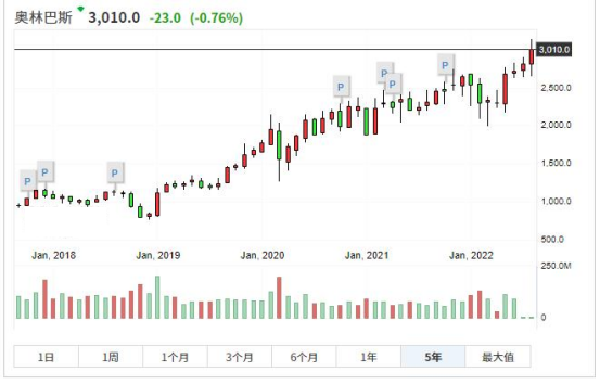 近五年來(lái),奧林巴斯的股價(jià),上漲了3倍。
