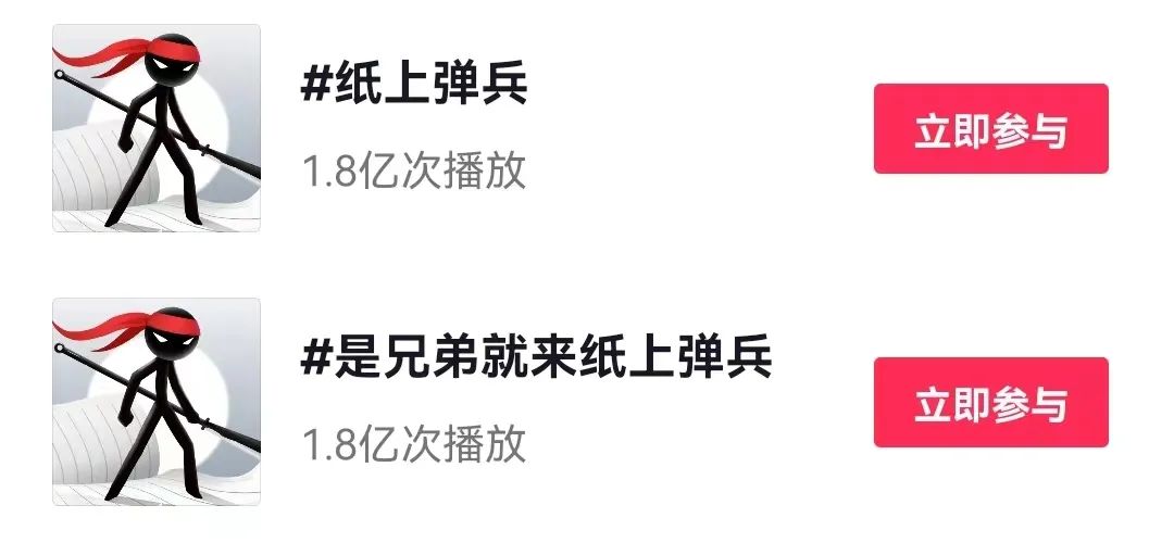 進入推廣階段,Ohayoo以抖音為主要陣地,通過游戲發(fā)行人計劃等方式吸引大量達人參與游戲內(nèi)容制作,圍繞懷舊畫風、超爽割草玩法、技能流派、DIY技能、合成系統(tǒng)等要素,搭建游戲內(nèi)容陣地,推出了#紙上彈兵、#是兄弟就來紙上彈兵 等熱門話題,從而成功為產(chǎn)品造勢,加速產(chǎn)品爆量。目前,#紙上彈兵、#是兄弟就來紙上彈兵兩個話題的播放量已經(jīng)累計超過了3.6億。
