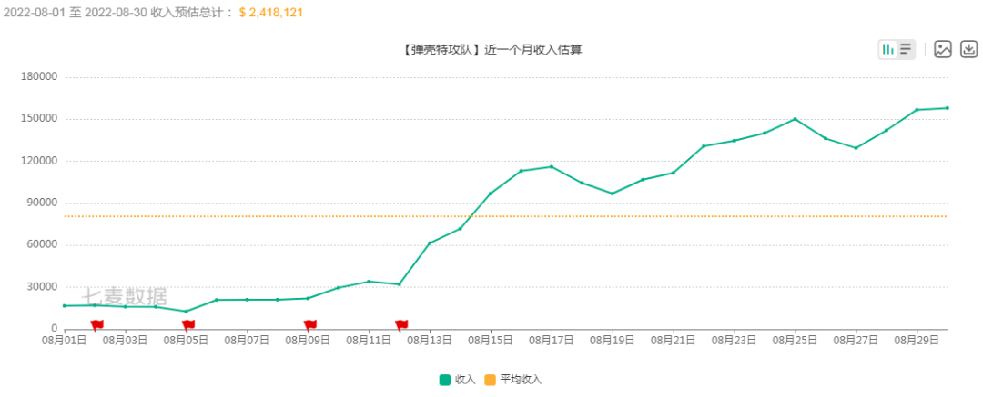 7月4日,《蛋殼特攻隊》正式上線國內(nèi)App Store,并于8月12日躋身首次進入iOS免費游戲榜單TOP5,且至今已連續(xù)半月穩(wěn)坐免費榜TOP2。據(jù)七麥數(shù)據(jù)預估,《蛋殼特攻隊》近一個月的下載量總計突破了288萬,收入累計超241萬美元。