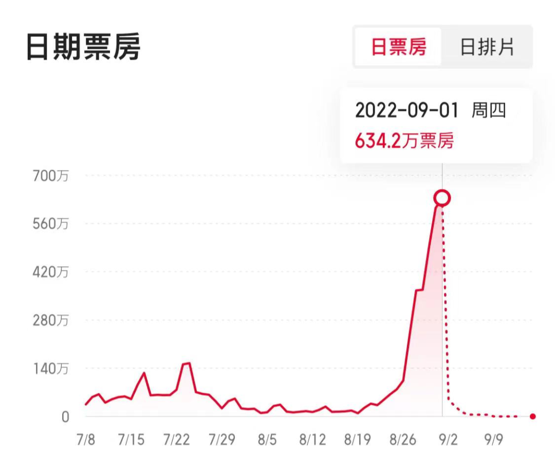 本片的片方也于8月29日配合得發(fā)出延長影片所有版本發(fā)行放映時間的通知,宣布密鑰再次延期至9月30日。本片也沒有辜負這次延期的決定,總票房于9月第一天強勢突破五千萬人民幣,且還有不斷上漲的趨勢。