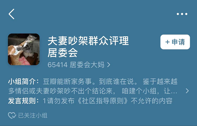 總說(shuō)“人類(lèi)的本質(zhì)就是磕CP”,其實(shí)這倒不一定是共性。人類(lèi)的本質(zhì)是愛(ài)看熱鬧,尤其是各種狗血抓馬的沖突場(chǎng)面。豆瓣今年1月初才建立的“夫妻打架群眾評(píng)理”小組,7個(gè)月便吸納近7萬(wàn)名組員,還不包括硬糖君這樣只關(guān)注不入組的。