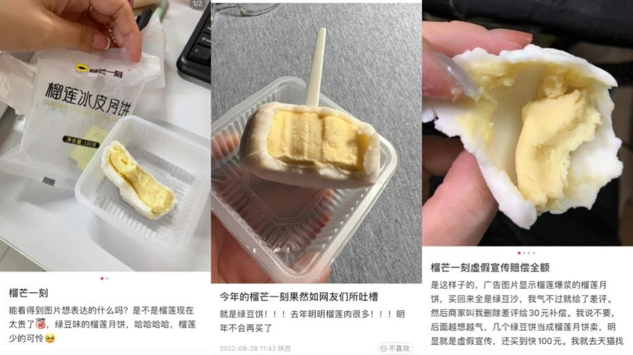 消費者吐槽榴芒一刻榴蓮冰皮月餅