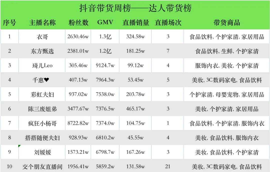 就好比,近期一位名為“衣哥”的帶貨主播在抖音勢(shì)頭正猛。飛瓜數(shù)據(jù)顯示,衣哥憑借一周1.3億的GMV成績(jī),超過(guò)彩虹夫婦、東方甄選、琦兒,成為近期抖音帶貨周榜榜首,頗有”黑馬之勢(shì)“。