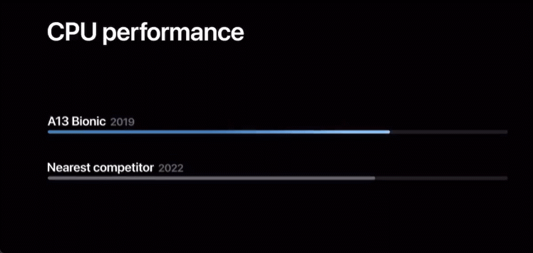 在介紹性能的時候,蘋果直接公開“嘲諷”了一眾友商,稱對手們今天還在追趕自己三年前的A13芯片。