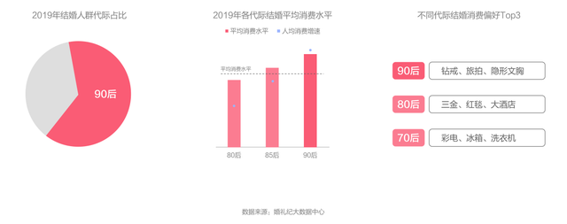 婚禮紀(jì)聯(lián)合結(jié)婚產(chǎn)業(yè)觀察發(fā)布的《2020年中國(guó)結(jié)婚消費(fèi)趨勢(shì)洞察》顯示,2019年平均每對(duì)新人結(jié)婚消費(fèi)達(dá)22.3萬(wàn)元,這個(gè)數(shù)字在2020年增長(zhǎng)至23.1萬(wàn)元,鉆戒、旅拍、隱形文胸竟成為90后結(jié)婚新三大件。