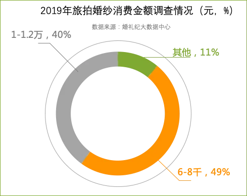 在婚紗旅拍機(jī)構(gòu)推出的不同價(jià)位的套餐中,6000~8000元是最受歡迎的價(jià)格區(qū)間,大約四成新人在婚紗照上的花費(fèi)過(guò)萬(wàn)。