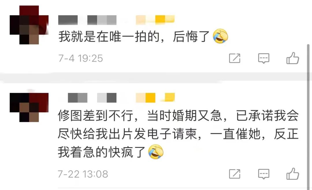 曾有網(wǎng)友向12315投訴她參與的婚紗旅拍照片嚴(yán)重貨不對(duì)版,偷換概念的微電影漫天要價(jià),售后客服卻置之不理。雖然合同上寫(xiě)明“選片時(shí)若對(duì)拍攝不滿意可重拍,重拍后選片仍不滿意,退還扣除酒店費(fèi)用后的所有款項(xiàng)”,但如何退款卻沒(méi)有明確表述。