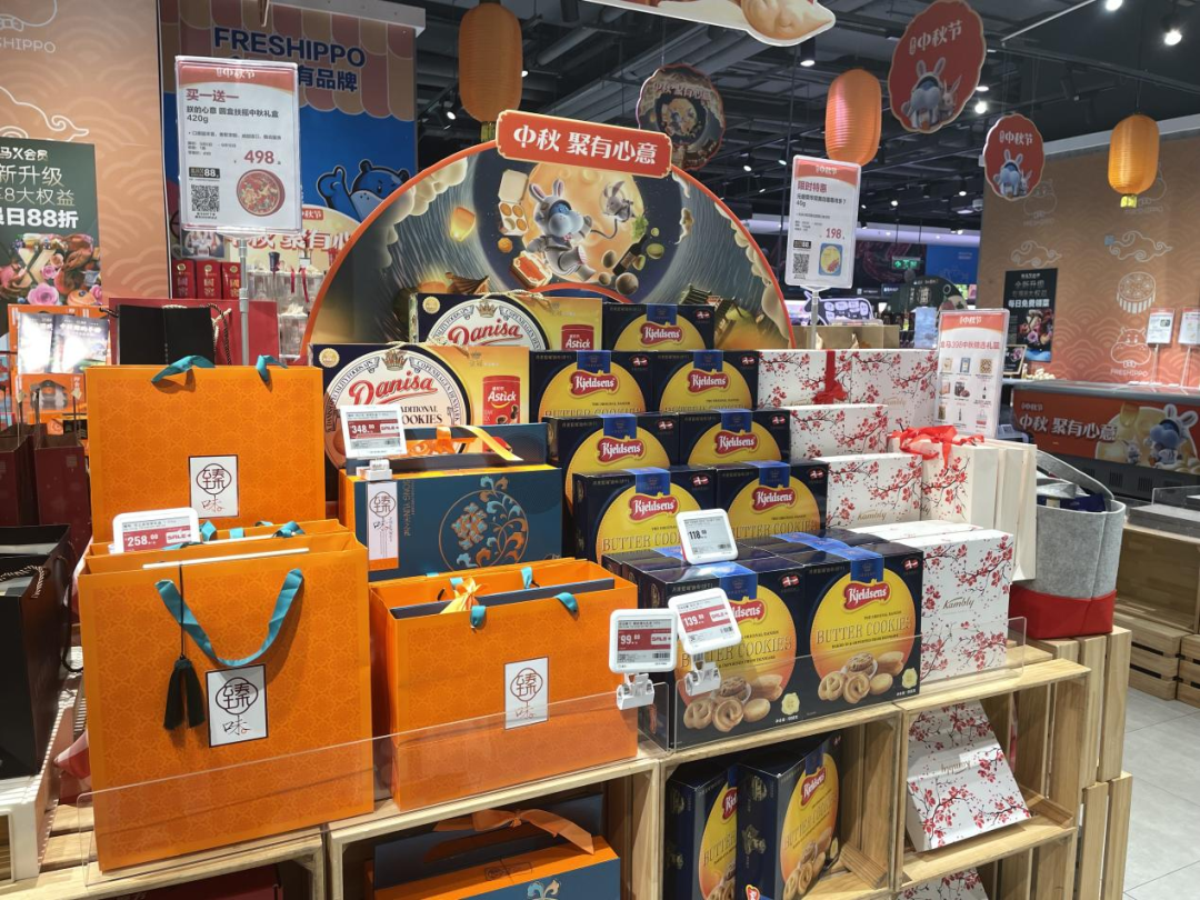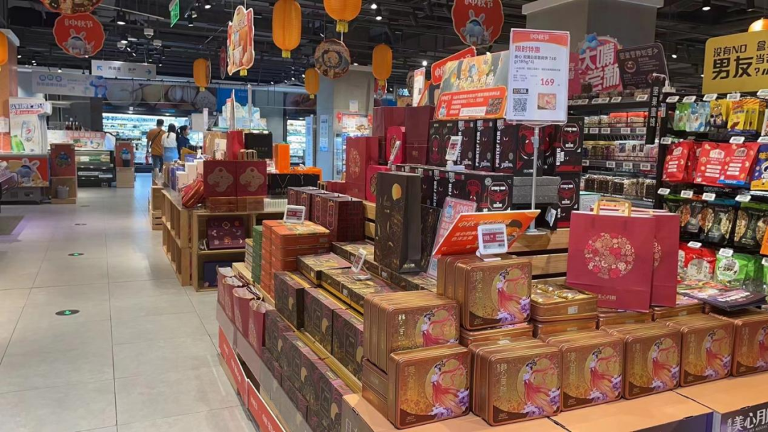 月餅禮盒方面,店內(nèi)以美心月餅和故宮食品等品牌為主,并且附上了例如低糖、低GI(低升糖指數(shù))等諸多特性。據(jù)盒馬工作人員介紹,店內(nèi)銷量第一的是一款標(biāo)價(jià)199元的美心低糖蛋黃白蓮蓉月餅。