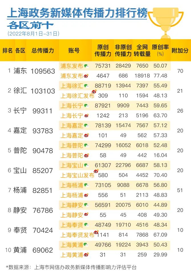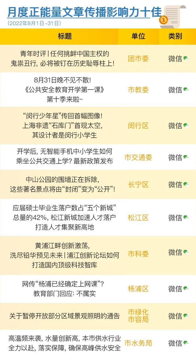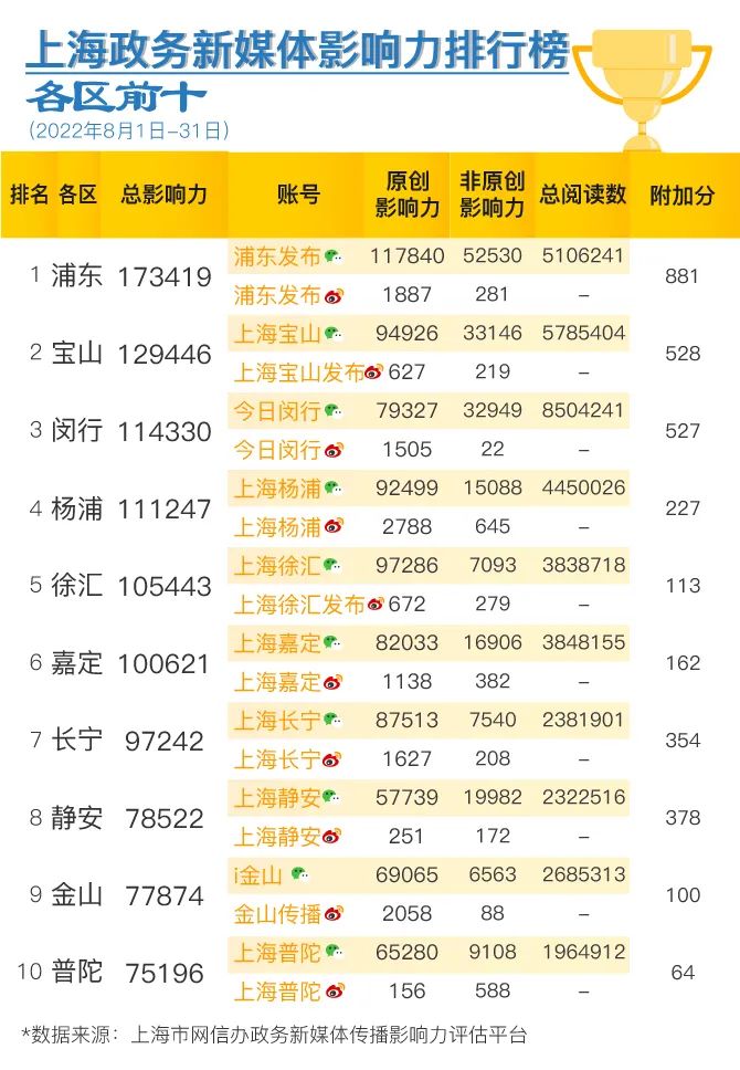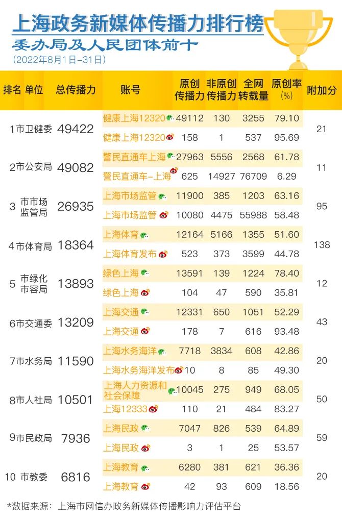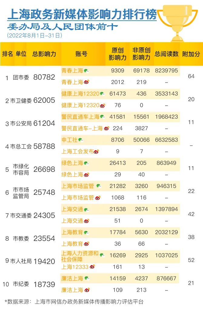 原標(biāo)題:上海政務(wù)新媒體8月傳播影響力榜單發(fā)布
