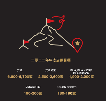安踏在財(cái)報(bào)中透露出今年的開店目標(biāo),旗下安踏主品牌門店數(shù)目標(biāo)6600~6700家,安踏兒童要達(dá)到2500~2600家的規(guī)模,F(xiàn)ILA(包括FILA、FILA KIDS、FILA FUSION)門店目標(biāo)1900~2000家,高端運(yùn)動品牌DESCENTE迪桑特要擴(kuò)張至190~200家,KOLON SPORT目標(biāo)180~190家門店。