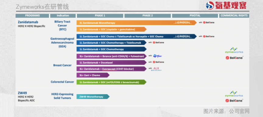 Zymeworks最核心的產(chǎn)品是ZW25(Zanidatamab)和ZW49。Zanidatamab是一款通過Azymetric平臺(tái)研發(fā)的新型靶向HER2雙抗,可以同時(shí)靶向HER2胞外區(qū)域的亞基2和亞基4的兩個(gè)不同表位,有可能帶來更好的治療效果。