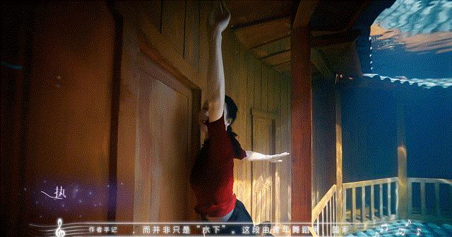 這個(gè)只有2分鐘的舞蹈,卻創(chuàng)造了許多名場(chǎng)面,女主角登階撥珠簾,雕亭頂后翻一躍下,唯美的場(chǎng)景,讓郭吉勇聲名大噪。
