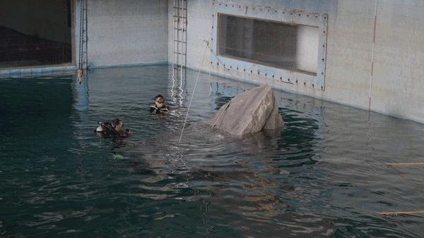 這些道具要求很高,光制作就要1個(gè)月,在搭建的時(shí)候,需要7名水肺工作人員和14名陸地人員,用兩天時(shí)間才將它們放置進(jìn)水中。