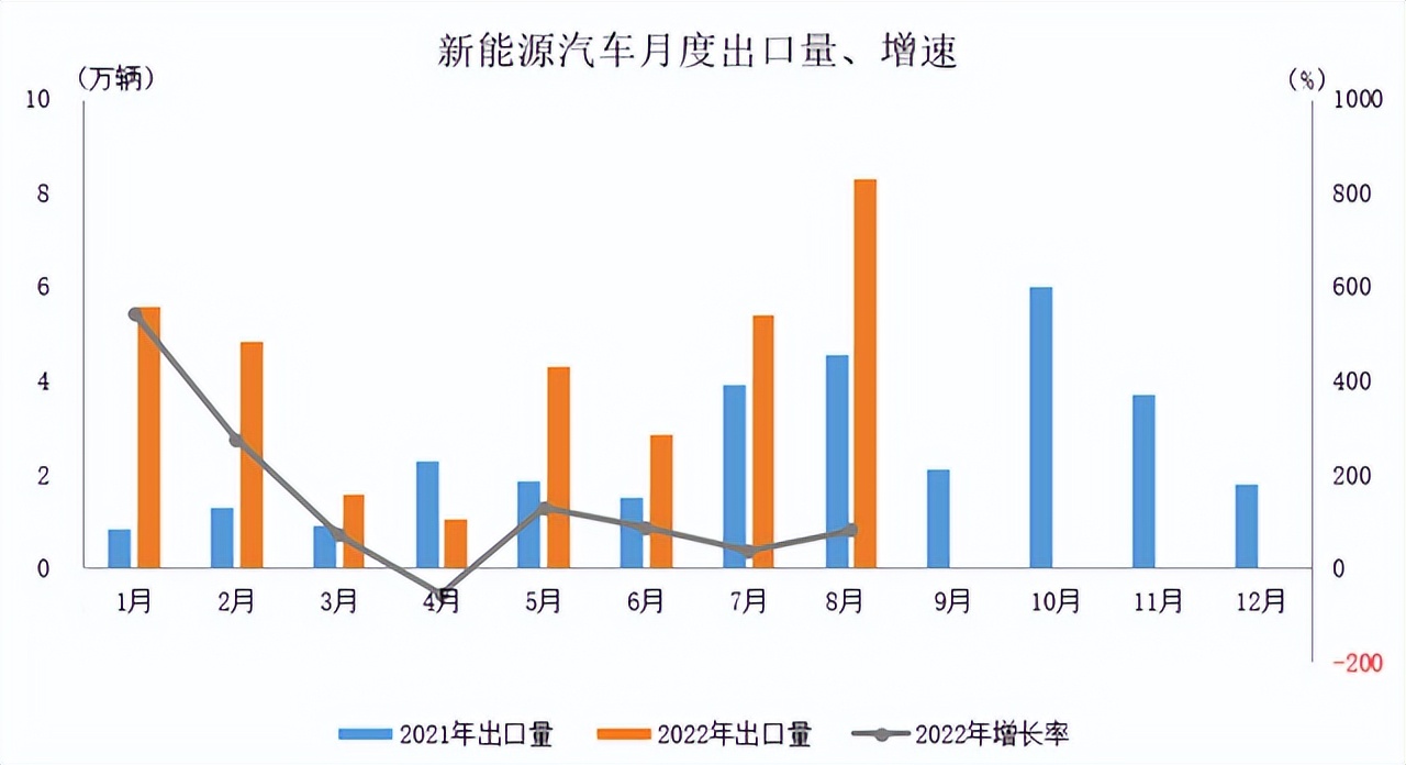 按結(jié)構(gòu)看,新能源雖然占比依然有限,但增長(zhǎng)勢(shì)頭強(qiáng)勁,一定程度上反映出海外市場(chǎng)的偏好動(dòng)向。2022年8月,新能源汽車(chē)出口8.3萬(wàn)輛,環(huán)比增長(zhǎng)53.6%,同比增長(zhǎng)82.3%。2022年1-8月,新能源汽車(chē)出口34萬(wàn)輛,同比大幅增長(zhǎng)97.4%。