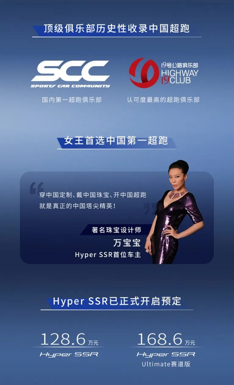 作為首任車主代表,以珠寶設(shè)計(jì)師身份上臺(tái)的萬(wàn)寶寶貼著Hyper SSR的蝶翼門表示:“穿中國(guó)服裝、戴中國(guó)珠寶、開中國(guó)超跑,才是真正的中國(guó)塔尖精英。”