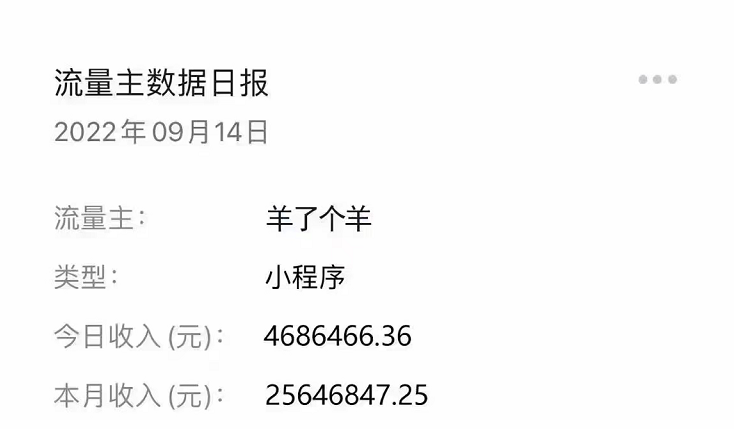 流量主數(shù)據(jù)日報顯示,《羊了個羊》僅9月14日一天就賺了將近500萬(馬化騰表示:核實了是ps偽造的)。這給玩家?guī)淼臎_擊更勝“抄襲”。有不少人甚至不知道,原來自己為了過關(guān)看廣告,開發(fā)團隊就能獲得真金白銀的收入。