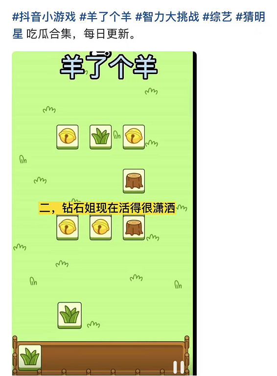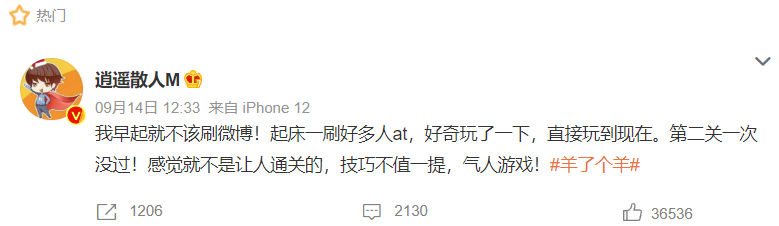 有人認為,《羊了個羊》爆火與逍遙散人、新浪游戲、游戲團等游戲大V參與種草過程有關(guān)。確實,他們都帶了相關(guān)話題發(fā)布微博。但硬糖君認為,《羊了個羊》向娛樂圈借東風(fēng),才是其破圈的關(guān)鍵。