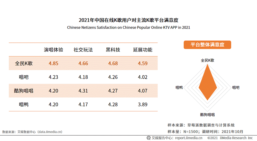 K歌賽道上,相比于后來者音街,由于背靠騰訊音樂娛樂集團,全民K歌在技術服務、內(nèi)容豐富度等方面都有較強支撐,使其整體服務質(zhì)量保持較高水平。艾媒咨詢數(shù)據(jù)顯示,目前全民K歌在演唱體驗、創(chuàng)新功能、黑科技、社交玩法的用戶滿意度都處于行業(yè)領先地位。