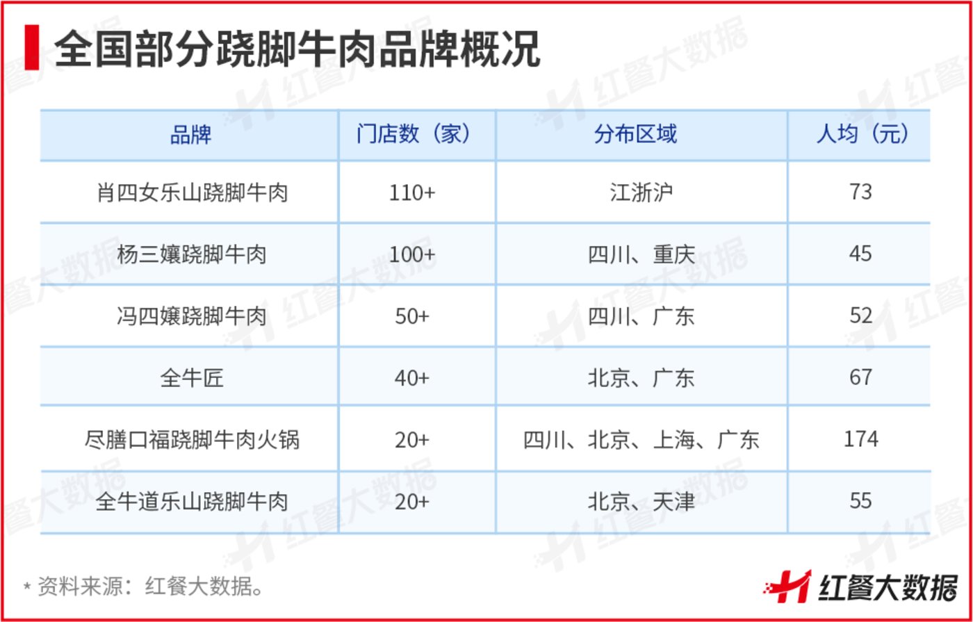 還有楊三孃蹺腳牛肉,去年新增40多家門店,目前總門店數(shù)100+家,主要分在四川、重慶等地。此外還有四川的馮四嬢、北京的全牛匠、廣東的盡膳口福等品牌,在當(dāng)?shù)囟夹∮兄?。其中肖四女(上海黃陂南路店)、樂山胖哥(成都東風(fēng)路總店)還登上了“大眾點(diǎn)評(píng)2022必吃榜”。