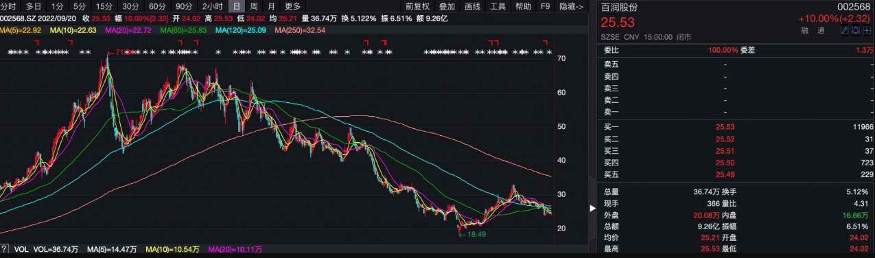 連續(xù)兩個(gè)漲停,讓百潤股份重回人們的視野。