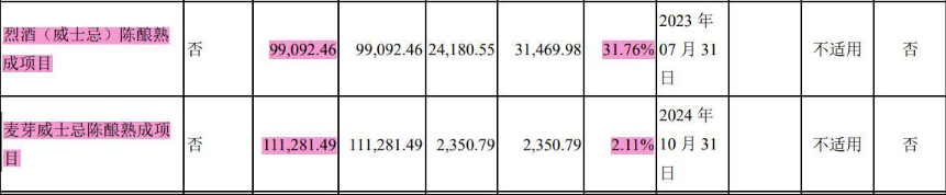為此,公司于2020年及2021年分別通過定增及可轉(zhuǎn)債的方式合計(jì)募資超過20億元用于烈酒項(xiàng)目的建設(shè)投產(chǎn)。其中,2020年募資9.91億元,全部用于”烈酒(威士忌)陳釀熟成項(xiàng)目”,2021年的11.13億元募資全部用于“麥芽威士忌陳釀熟成項(xiàng)目”。