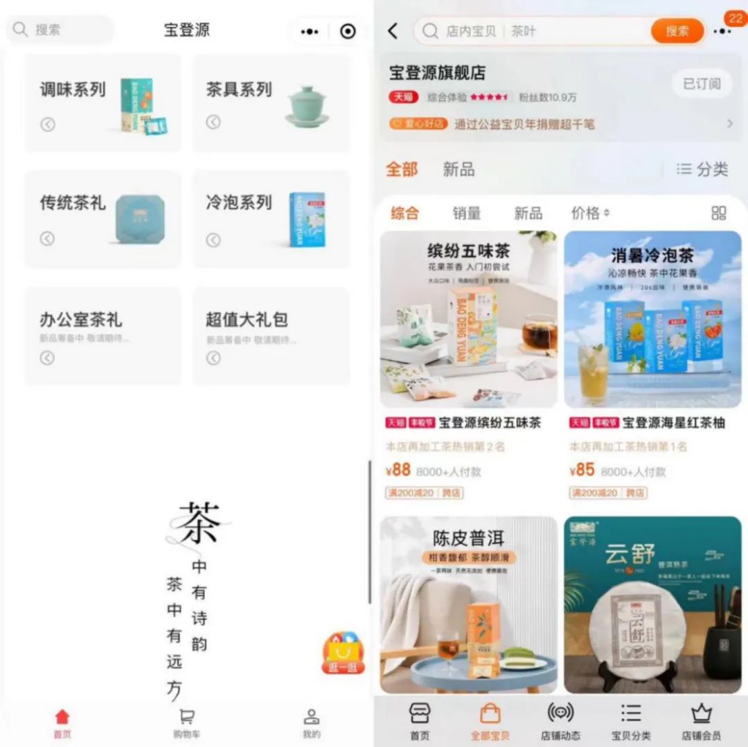 微信上一個名叫“寶登源茶業(yè)”的公眾號,認(rèn)證公司正是勐海寶登源茶業(yè)有限公司,9月21日的公眾號推文中公開指明了其產(chǎn)品在寶登源天貓旗艦店售賣。在其天貓旗艦店鋪里,正在售賣的產(chǎn)品有六種,包括果茶、冷泡茶和普洱茶等,而且茶葉的價(jià)格都比較昂貴。