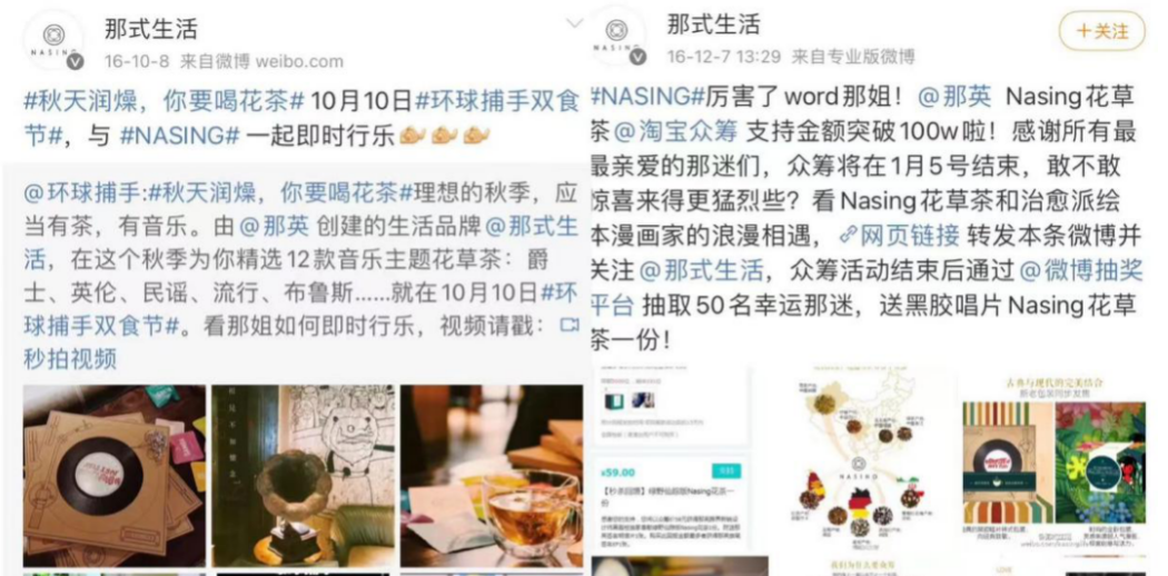 那英賣茶,主要宣傳陣地也在微博上,在微博停更前,賬號@那式生活做了不少對果茶的宣傳。那式生活的背后是北京那式生活文化發(fā)展有限公司,企查查信息顯示,那式生活成立于2016年,那英曾是監(jiān)事和自然人股東,不過在2017年11月,那英退出了投資人序列。