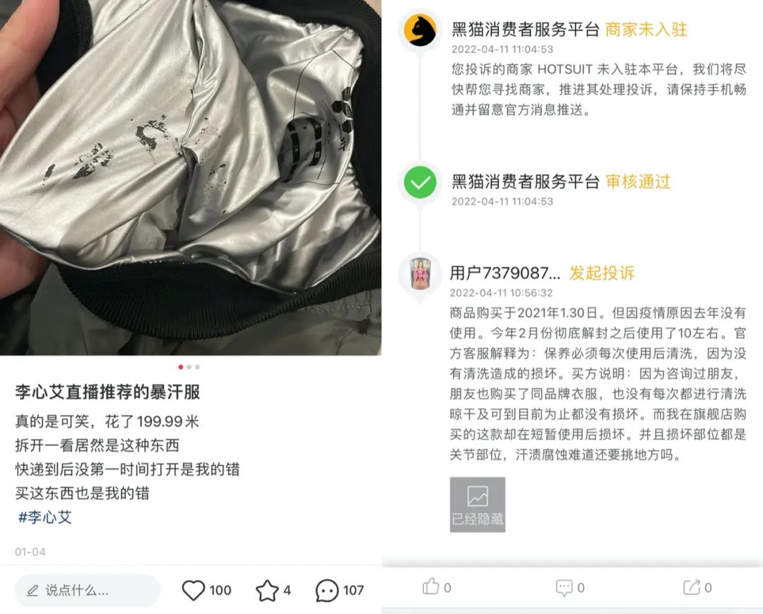 小紅書(shū)、黑貓投訴上,均有消費(fèi)者投訴HOTSUIT暴汗服的涂層容易脫落損壞,導(dǎo)致產(chǎn)品使用壽命很短,這使得HOTSUIT的中高端路線受到一定沖擊。