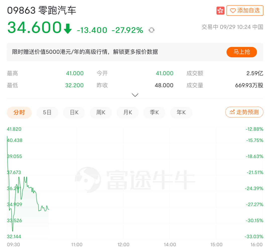 早在昨日的暗盤(pán)交易中,零跑汽車就收跌13.96%,報(bào)41.3港元。