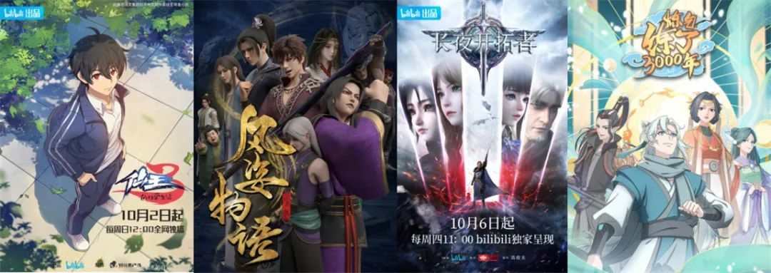 隨后,《風(fēng)姿物語 仙羅篇》定檔10月3日,表情包動畫化的《小藍(lán)和他的朋友》定檔10月5日,《長夜開拓者》和《煉氣練了三千年》分別定檔10月6日、7日,后兩部作品均是網(wǎng)文IP改編作品。