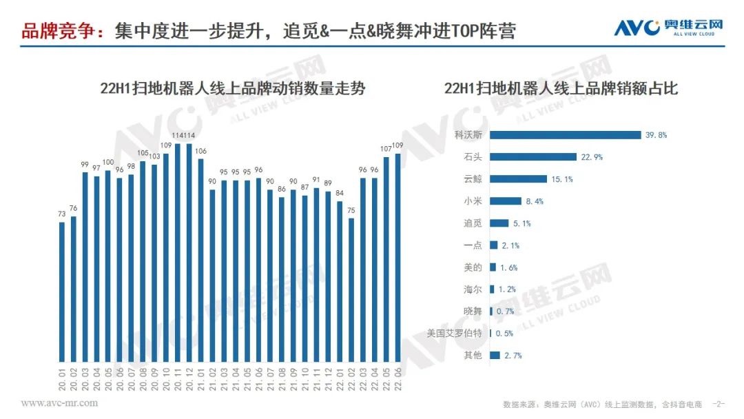 當(dāng)然,掃地機(jī)器人在過(guò)去幾年中呈現(xiàn)高速增長(zhǎng)的態(tài)勢(shì),不同領(lǐng)域的競(jìng)爭(zhēng)者涌入,繼而使得市場(chǎng)競(jìng)爭(zhēng)壓力逐漸增大。諸如手機(jī)廠商的小米,海爾、美的等大型家電廠商也紛紛推出掃地機(jī)器人。也有新晉玩家,其中追覓、一點(diǎn)、曉舞上半年新晉前十陣營(yíng),且也看到品牌在不斷進(jìn)入掃地機(jī)器人賽道,且頭部廠商之間競(jìng)爭(zhēng)仍然激烈。