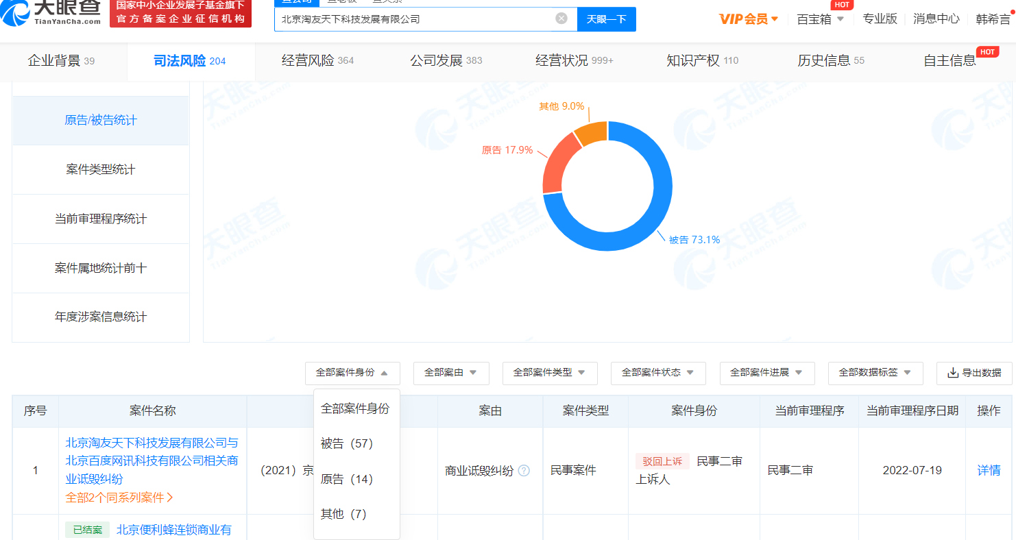 對于脈脈而言,此類事件過于常見。天眼查數(shù)據(jù)顯示,2017年至今,脈脈涉及法律訴訟68起,其中57起,身份為被告,占比73.1%,案由大多是網(wǎng)絡(luò)侵權(quán)責(zé)任糾紛與名譽(yù)權(quán)糾紛,這些糾紛大多起于社區(qū)內(nèi)容。