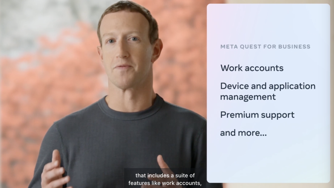 此外,扎克伯格揭曉了Meta針對“元宇宙社交平臺”Horizon Worlds版本迭代、Quest 2去年成果如何、虛擬數(shù)字人等多方面內(nèi)容更新做了詳細闡述,并且他還提前透露了明年即將發(fā)布Meta Quest for Business計劃。