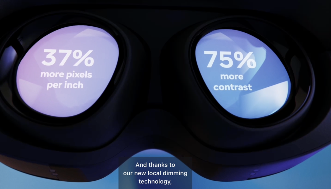 該設備搭載了高通升級版的XR2芯片平臺XR2+Gen 1,采用了折疊光路Pancake光學方案,其顯示區(qū)域相較于Quest 2薄了40%,但整機重量卻達到了722g。并且,其LCD屏幕的PPI也比Quest 2高37%,對比度高75%。
