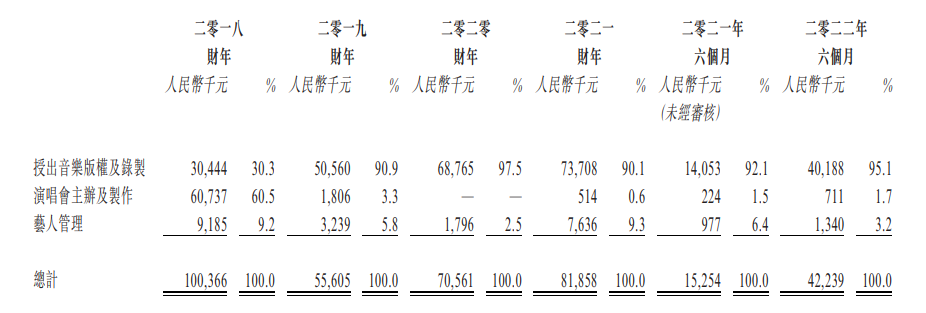 風(fēng)華秋實(shí)作為一家在中國超過10年的音樂娛樂服務(wù)供應(yīng)商,主要專注于授出音樂版權(quán)及音樂錄制業(yè)務(wù)以及演唱會主辦及制作、藝人管理等。