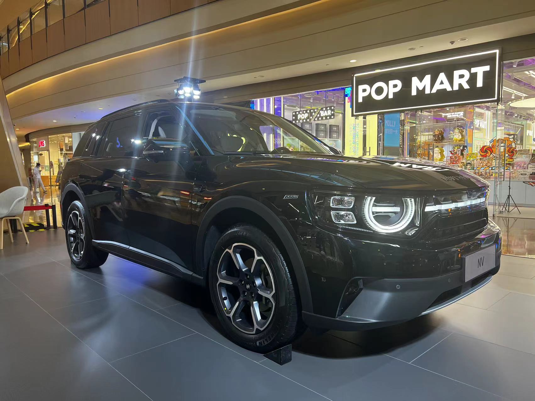 展車則被放置在了距離門店15米之外,位于商場公共區(qū)域的展臺上。界面新聞到訪時,該展廳銷售人員正在向一名顧客做車型介紹。