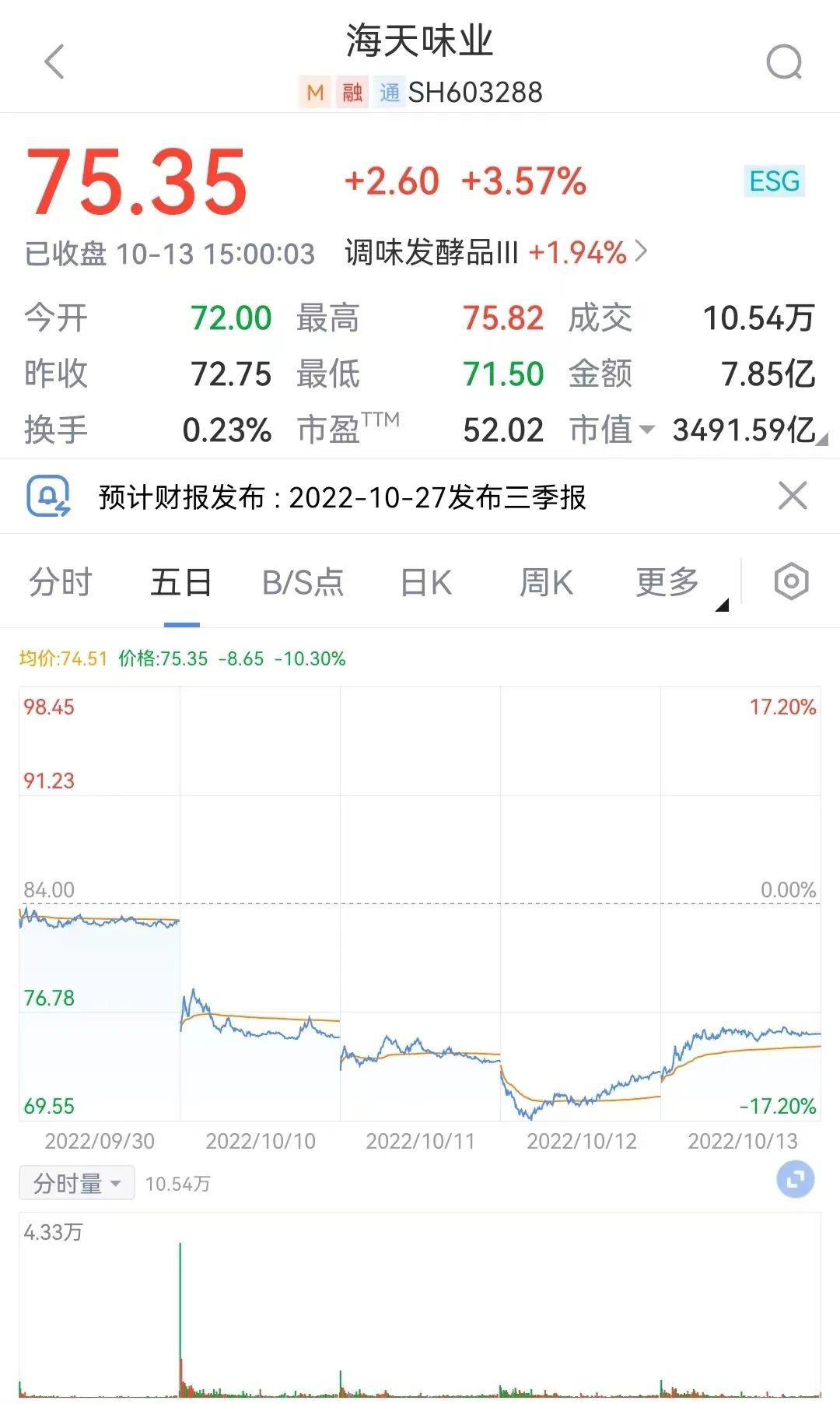 一次“科技與狠活”的視頻發(fā)布,讓海天從9月30日起,在11天內(nèi)連發(fā)三次聲明,都沒能平息公眾的質(zhì)疑聲。截至昨日收盤,海天味業(yè)股價雖然單日小幅上漲,但相比9月30日仍累計下跌超9%。
