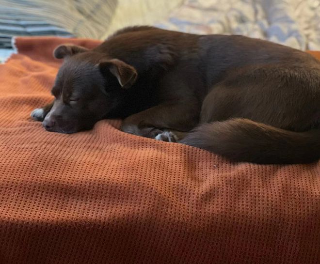 就這樣,在被子沒到的這幾天,我睡覺的時候,都會在床腳上鋪一個棕黃色的毯子,專門用來給狗狗睡覺。以前我們都是各睡各的,但最近我經(jīng)常把枕頭搬過去,湊近熟睡的狗子,然后把我的手搭在她翻開的肚皮上,或者把腳伸過去。實際上,當(dāng)我每次靠近狗子時,我就已經(jīng)能感覺到她周圍的空氣都是熱的。