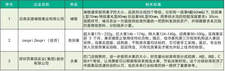 業(yè)內(nèi)人士表示,品牌化產(chǎn)品對下游市場端的重要性遠高于上游生產(chǎn)端,品牌的價值能夠在市場層面上得以發(fā)揮和體現(xiàn)。盡管其中有一定渠道產(chǎn)生的影響,但歸根結底,渠道里的競爭與訂單的品質(zhì)同樣息息相關,而品牌農(nóng)產(chǎn)品背后所代表的正是產(chǎn)品的含糖量在某一區(qū)間、果徑在某一范圍、微量元素的含量范圍以及被嚴格規(guī)定的果酸含量等等硬性的標準指標。