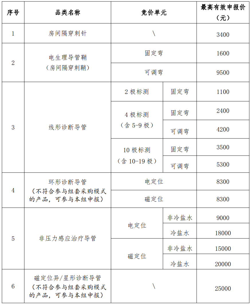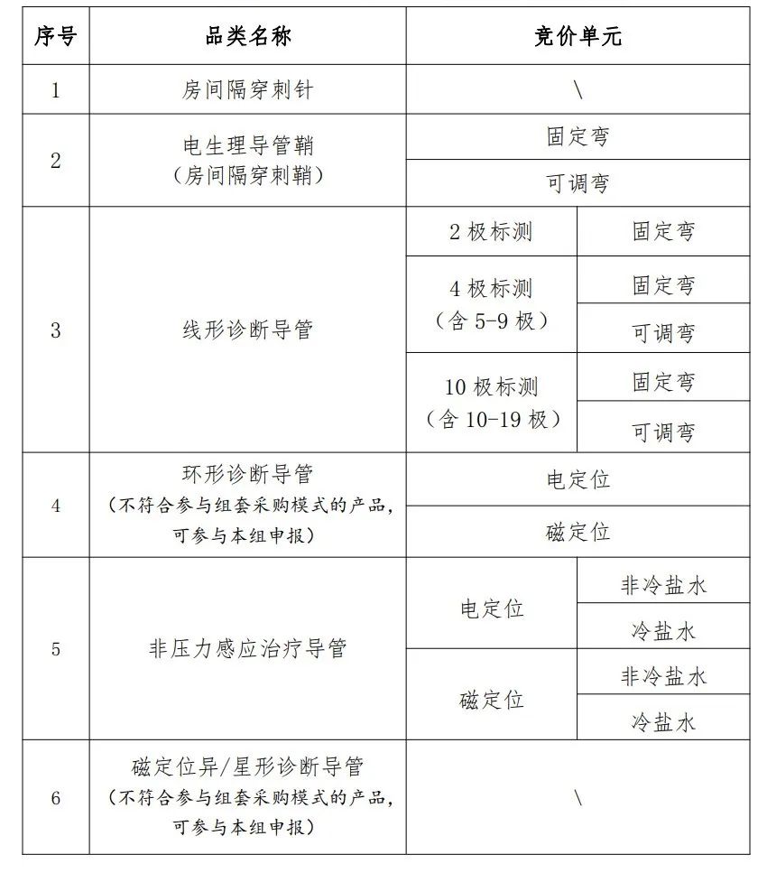 8類產(chǎn)品分成4個(gè)組套進(jìn)行報(bào)價(jià),包括磁定位異/星形診斷導(dǎo)管+磁定位壓力感應(yīng)治療導(dǎo)管等可組成套件的產(chǎn)品。
