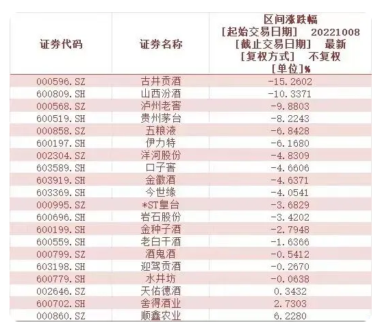 國慶假期之后,白酒股一副山雨欲來之勢(shì),A股20家上市白酒企業(yè),有17家出現(xiàn)了下跌。