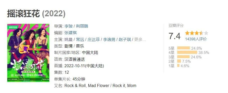 截至目前,這部劇在豆瓣評分為7.4,超過1.4萬人打分,但是兩極分化的評論各立山頭。打了五星的說姚晨塑造的女主有“不care一切的拽感”,令人眼前一亮;打了一分的說它“極其尷尬”,簡直“有辱搖滾精神”。
