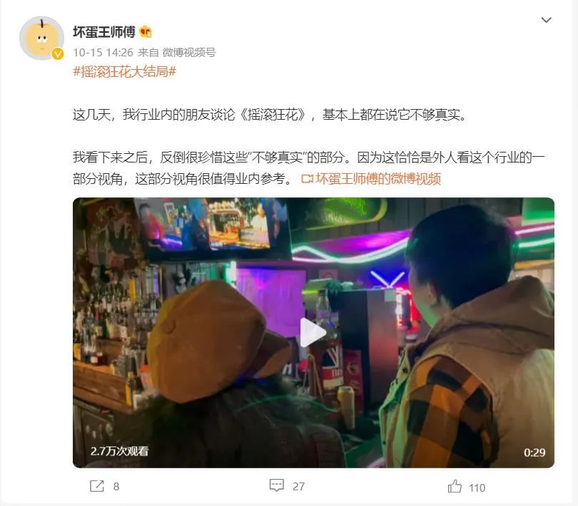 就像壞蛋調(diào)頻王師傅在微博上的評論:“這幾天,我行業(yè)內(nèi)的朋友談?wù)摗稉u滾狂花》,基本上都在說它不夠真實?!辈贿^,從業(yè)者對于這種“懸浮”常懷豁達,“我看下來之后,反倒很珍惜這些“不夠真實”的部分。因為這恰恰是外人看這個行業(yè)的一部分視角,這部分視角很值得業(yè)內(nèi)參考?!?/p>