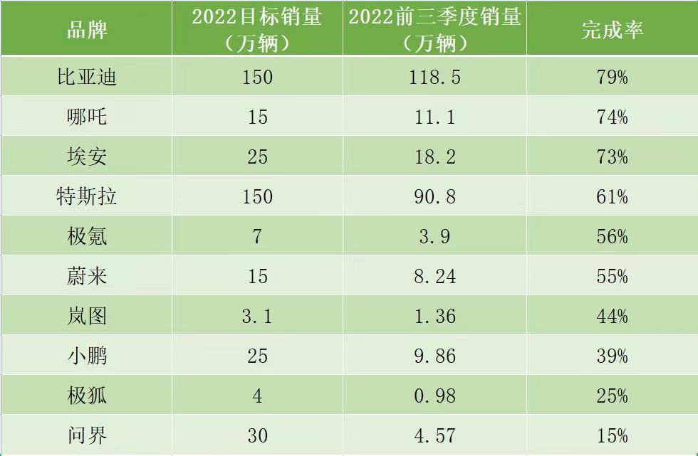 汽車品牌通常會(huì)在年初參考去年數(shù)據(jù)制定全年銷量預(yù)期,并伴隨實(shí)際市場(chǎng)表現(xiàn)進(jìn)行調(diào)整。在前三季度新能源市場(chǎng)持續(xù)走熱的背景下,新能源乘用車市場(chǎng)主流品牌銷量KPI完成情況值得關(guān)注。